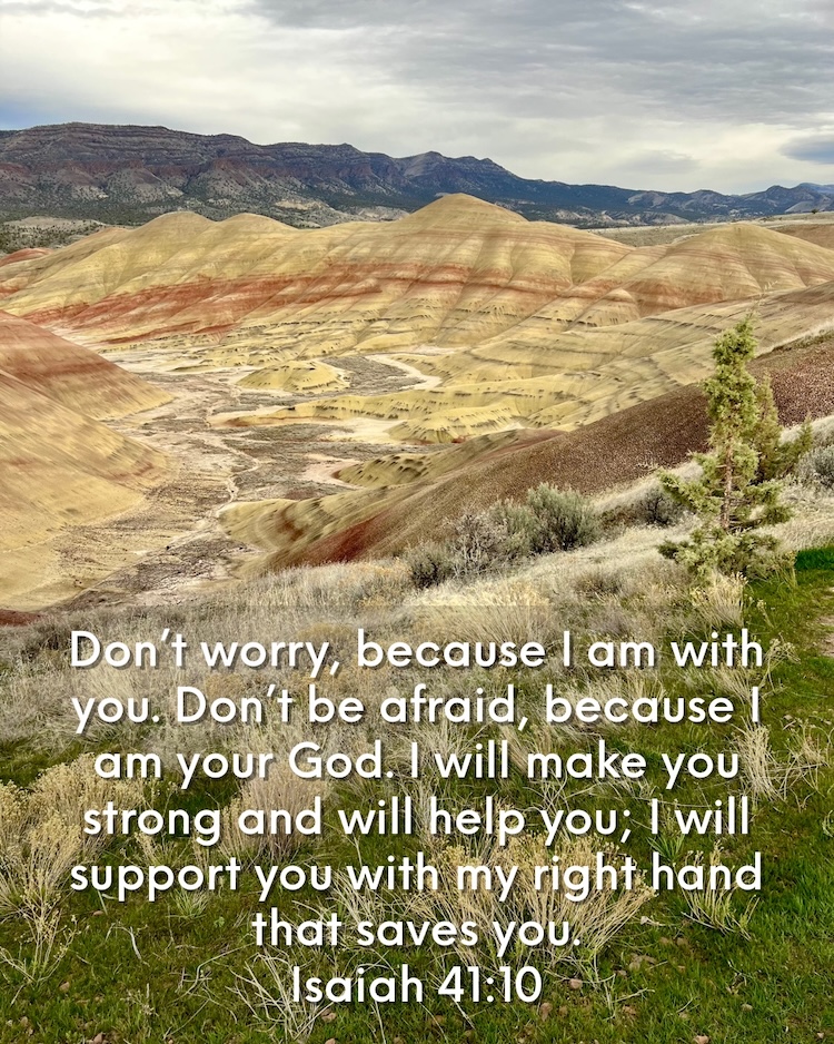 Don’t Worry Don’t worry, because I am with you. Don’t be afraid, because I am your God. I will make you strong and will help you; I will support you with my right hand that saves you. Isaiah 41:10 NCV