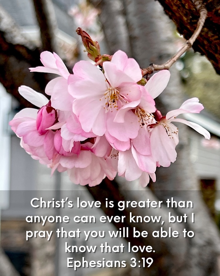 Christ’s Love Christ’s love is greater than anyone can ever know, but I pray that you will be able to know that love. Ephesians 3:19 NCV